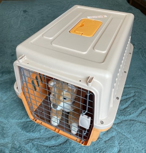 チャボはクレートに入れた状態で貨物室での移動でした。